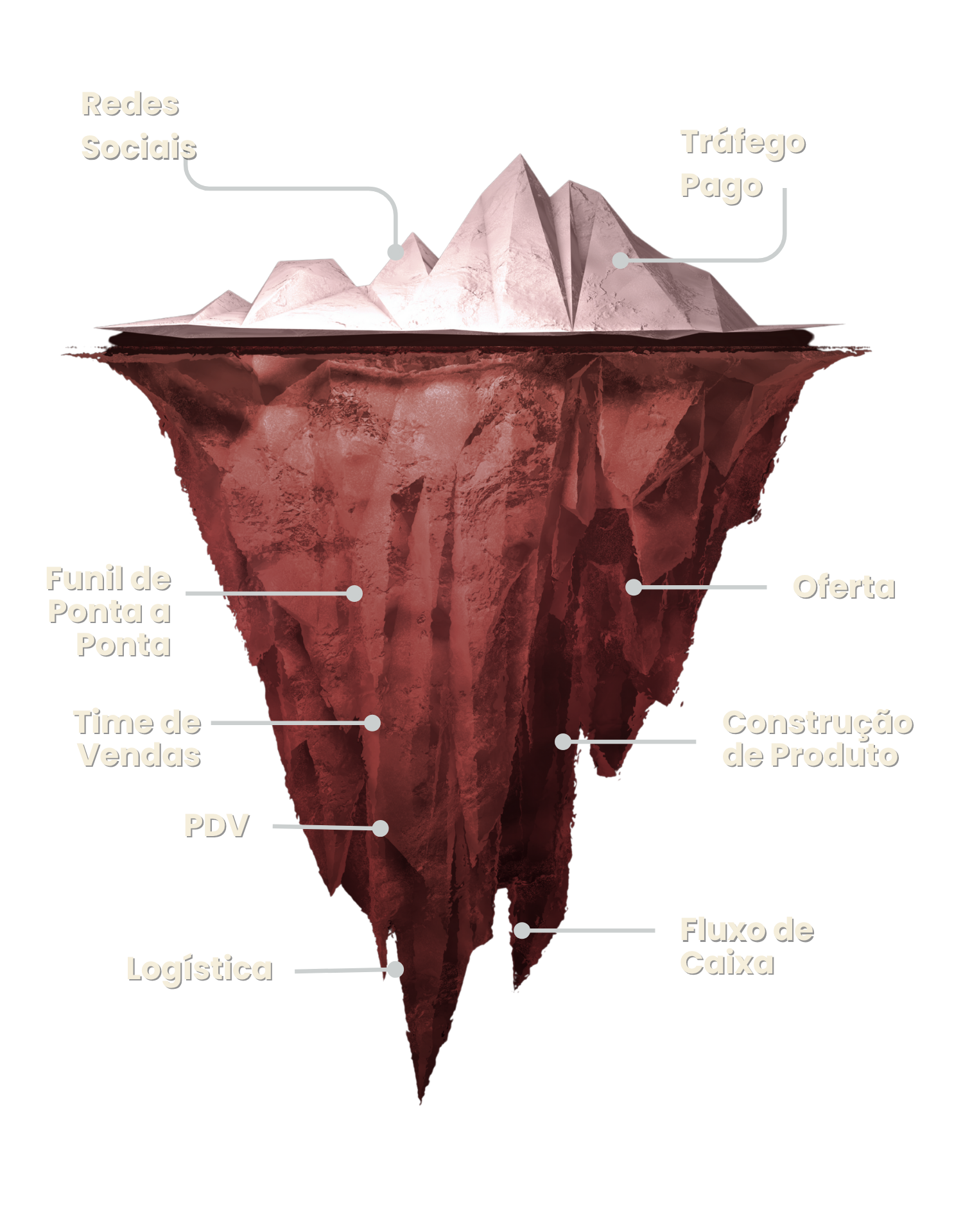 Nós enxergamos o que está abaixo da superfície: oferta, produto, funil, time de vendas, PDV, logística e fluxo de caixa. É por isso que as estratégias da Brutal não são genéricas — são planos personalizados que alinham marketing, operação, vendas e retenção.